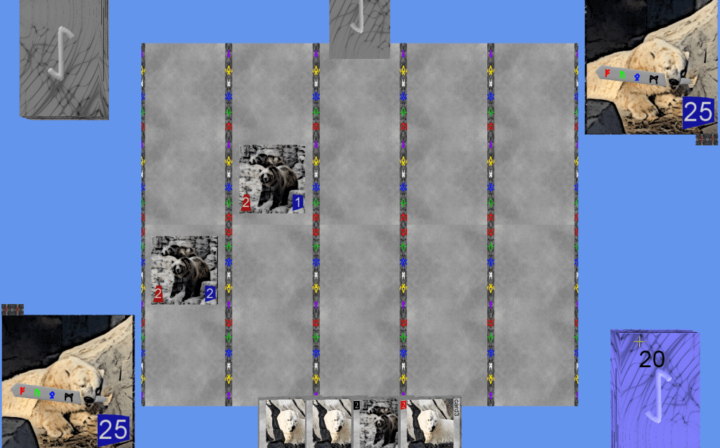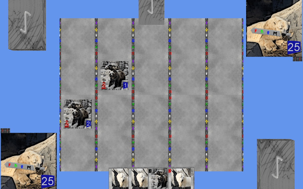 Progress on drawing the board – still need to draw the hands and decks. Next is the mouseover logic.